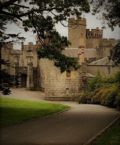 We ended up at Balloch Country Park, which sits prettily on the shores of Loch Lomond. This loch is often featured in songs that speak of its beauty. It did not disappoint! I highly recommend a stop here. Entrance to the park is free. There is a castle and walled garden on the grounds, impressive views of the loch, and nature trails aplenty. The castle is no longer habitable and entry is forbidden, but we were able to wander around outside and through the walled garden. I use a certain word often throughout my Scotland blogs, but I can’t help it. This park had charm. The whole country is charming. I was smitten here at Balloch Country Park and the country continued to work its way into my heart throughout our time there.