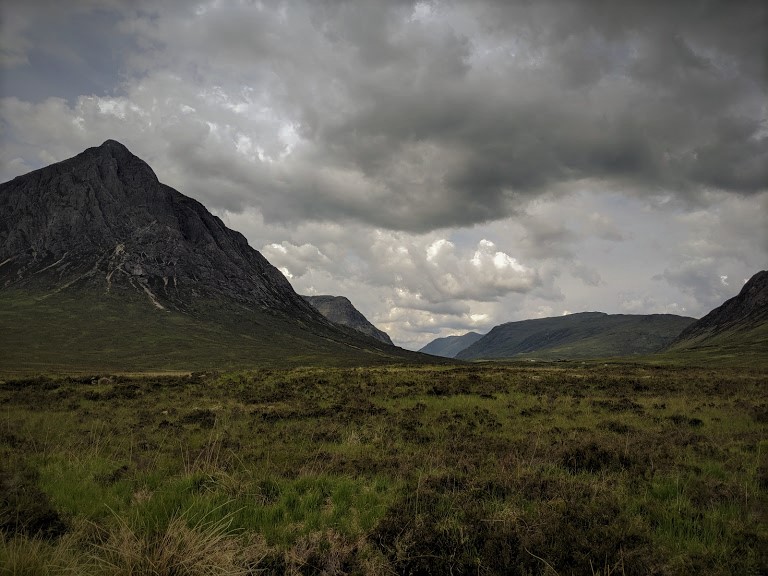Once we left Loch Lomond behind, we were treated to the wild, wide open spaces of Scotland. We couldn’t resist pulling over for a rest near Rannoch Moor. The views from the highway alone drew the eye and the spirit. Rannoch Moor is a vast stretch of land. You will find rocky outcrops, rivers, bogs and more and a variety of plants and animals. This is an area I would love to return to to experience in depth. It is recommended to enjoy the area via a ride on the West Highland Railway.