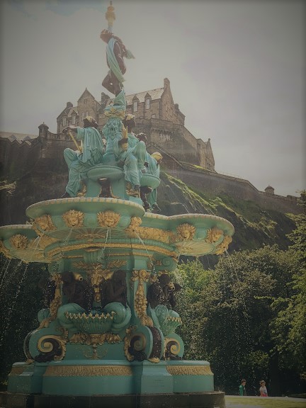 We strolled in and out of shops and found ourselves in the Princes Street Gardens. I love how the city moves from paved streets to green spaces with such ease! The centerpiece of the Gardens is the Ross Fountain, sculpted by Jean-Baptiste Jules Klagmann and purchased for Scotland by Mr. Daniel Ross, who described the fountain as “obtaining universal admiration”. Details on the fountain include four female figures representing science, arts, poetry and industry.